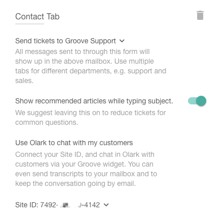 If you are using multiple Customer Support Widgets, you can set up multiple Olark integrations using your different Site IDs. You can select the Site ID to use for each widget under the Contact tab options in your widget settings.