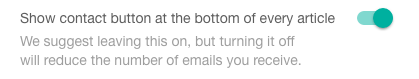 You can toggle on/off an option to add a contact button to the bottom of every article in your widget.