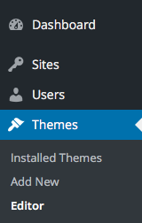 To install your customer support widget on a WordPress site, go into your WordPress dashboard and then click on Themes > Editor on the left side of the page.